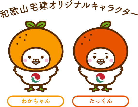 宅建協会のシンボルである ハト と和歌山名物の みかん をモチーフにした、のんびり屋でマイペースな双子のコンビ。